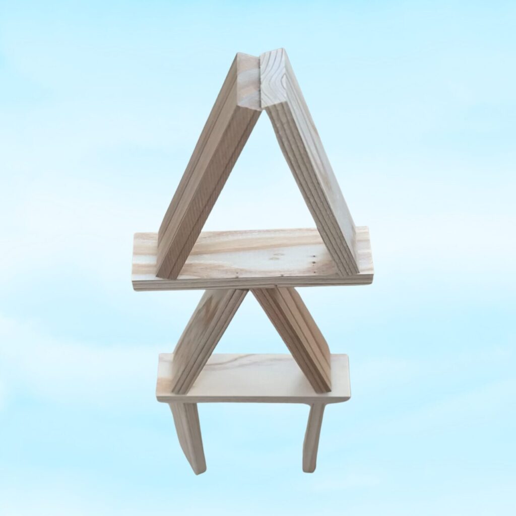 どちらも、細長い木の板を組み合わせて遊ぶシンプルな積み木で、積む・並べる・崩すなど、遊び方は無限大。
